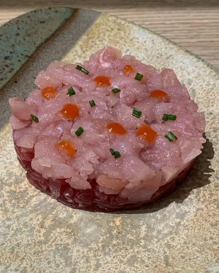 Tonno rosso, ricciola, erba cipollina, salsa piccante